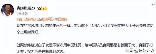 现在的曾凡博和此前的崔永熙一样,实力够不上NBA,但至少季前赛大比分领先总该给个上场时间吧!