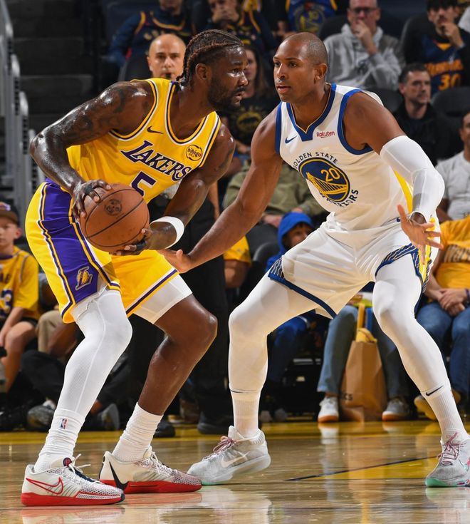 勇士季前赛首秀科尔摆出了一套死亡五矮:库里1.91米、波杰姆斯基1.93米、穆迪1.96米、巴特勒2.01米、追梦1.98米,这套先发平均身高1.958米,湖人队多位主力轮休,但先发的拉拉维亚、八村、艾顿、范德比尔特都在两米以上,艾顿更是7尺中锋。