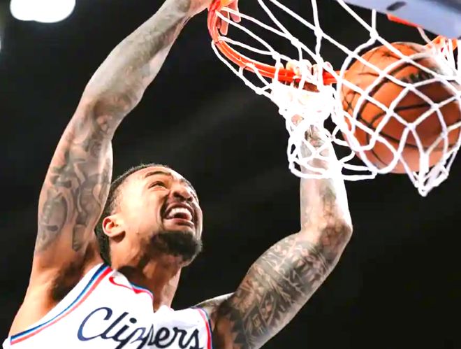 他完美填补了快船多年的“四号位空白”:过去几个赛季,快船四号位要么得分能力不足,要么防守覆盖有限;而科林斯既能在进攻端提供稳定输出——挡拆后定点投篮命中率达47%(训练营数据),本场既能命中外线投射,又能在篮下完成终结,连续暴扣展现爆发力;还能在防守端提供覆盖,从四号位换防到五号位,减轻祖巴茨、大洛佩兹的防守压力。