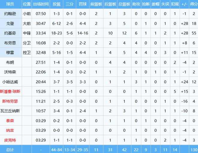 乖乖,约基奇投篮23中18,以高达约78%投篮命中率狂轰55分12板6助,带领掘金130-116取胜,对面的快船首发五虎加起来才54分。