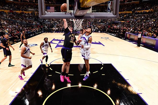 本场比赛中,湖人的替补侧翼新援杰克-拉拉维亚(Jake LaRavia)的表现还是相对不错的。拉拉维亚全场出场25分30秒,投篮10中6,三分线外5中2,罚球3中2,得到了16分4篮板2助攻1抢断的数据,还有1次犯规,正负值为+12。拉拉维亚本场比赛中又一次打出了攻守兼备的表现,他在进攻端能里能外,展现出了全面的得分能力,看起来他的特点与勒布朗-詹姆斯(LeBron James)的打法也是能够很好地兼容。拉拉维亚在防守端也是保持了很高的积极性并且起到了相当不错的效果。总体来看,拉拉维亚在本场比赛中的表现算得上是攻守兼备,他也是很好地扮演了自己的角色并且为球队的这场胜利做出了自己的贡献。