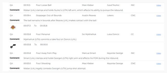 除了对于詹姆斯的点评之外,今日NBA官网第一时间还发布了湖人险胜爵士的最后两分钟裁判报告: